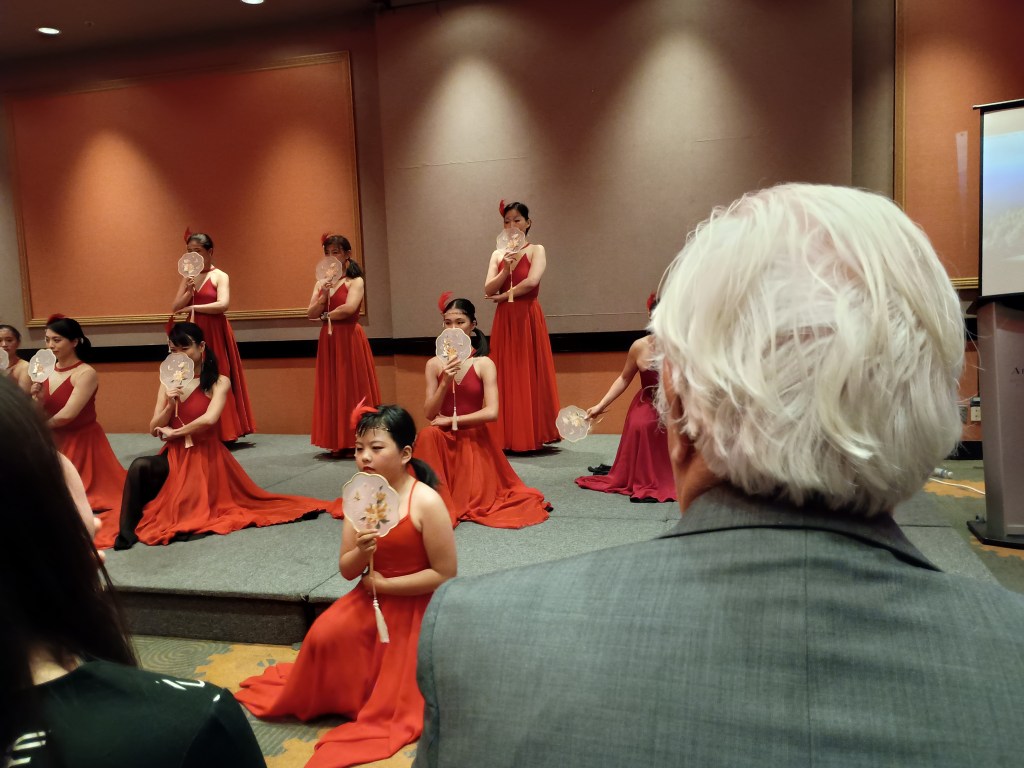 The dancers held this position for five minutes while the organisers sorted the music out, then performed a Chinese dance.